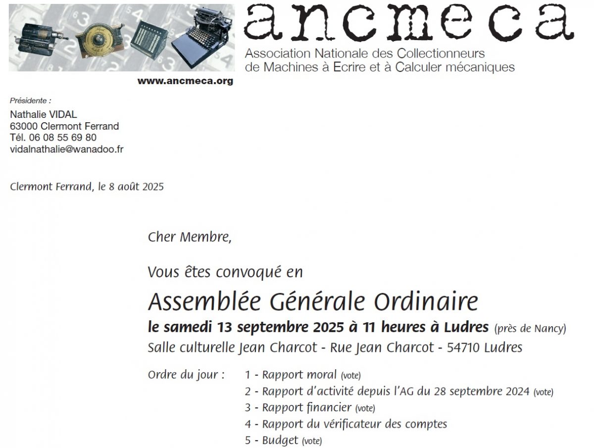 Ciquer ci-dessous pour voir la convocation en entier, pouvoir, plan d’accès, bulletin d’inscription aux repas :