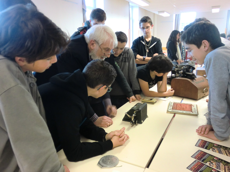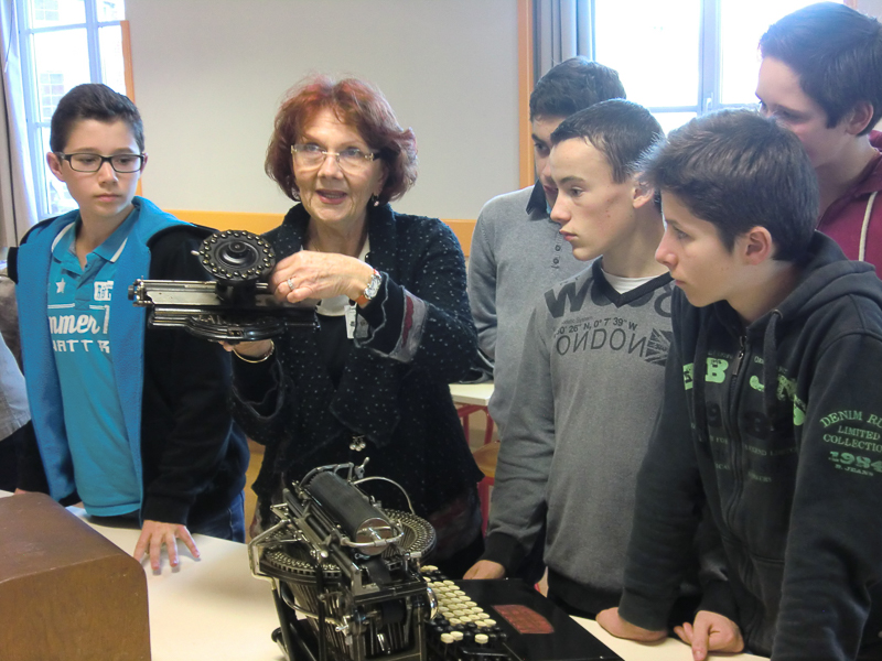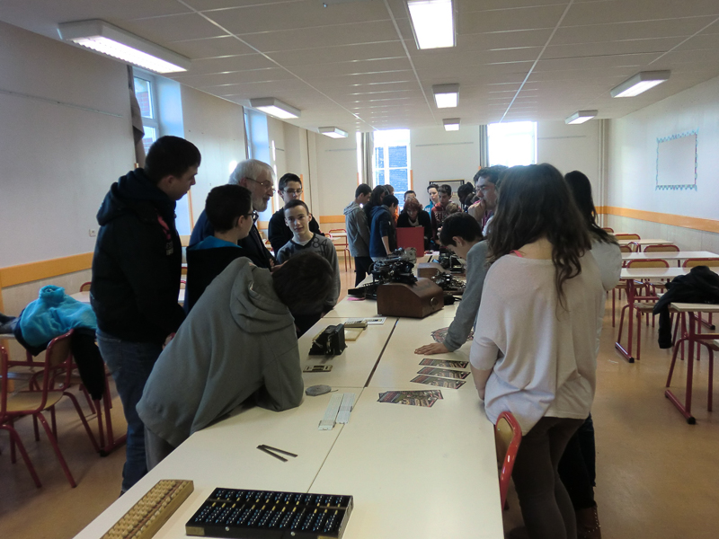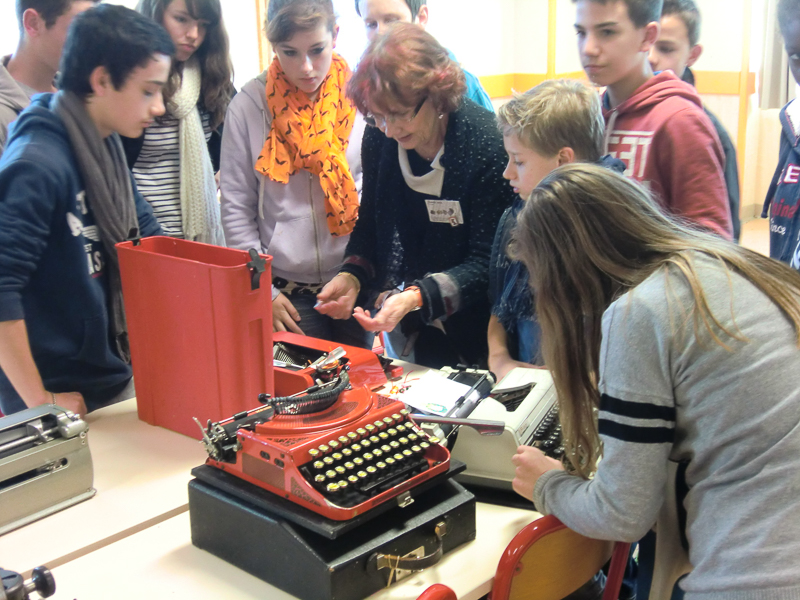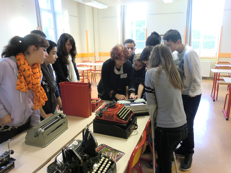 Une des huit classes devant les machines à écrire