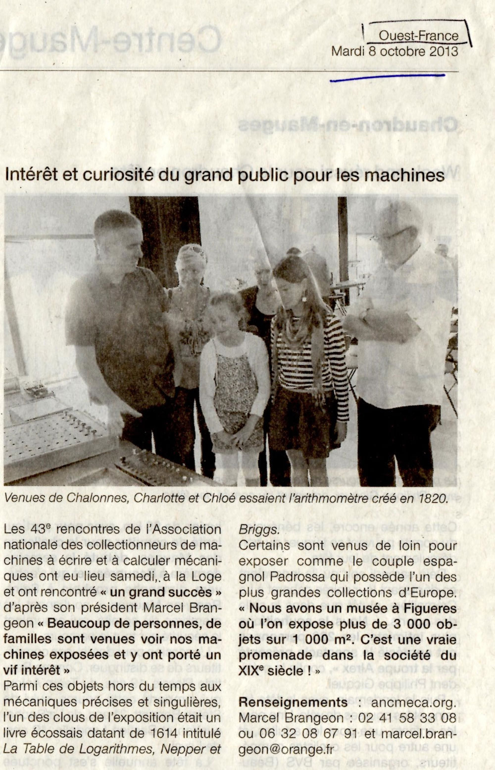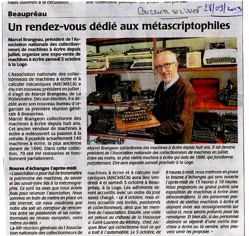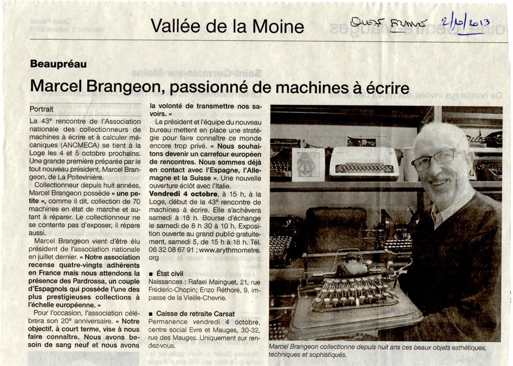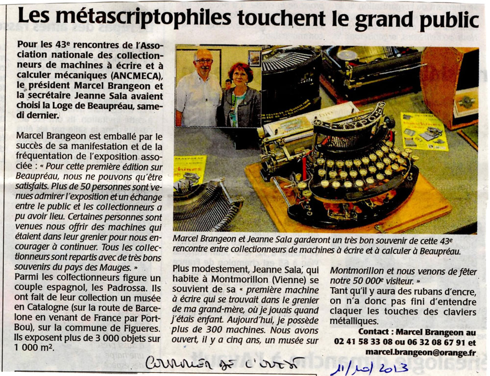 43e rencontre de l’ANCMECA à Beaupréau (Maine et Loire) – octobre 2013 :
